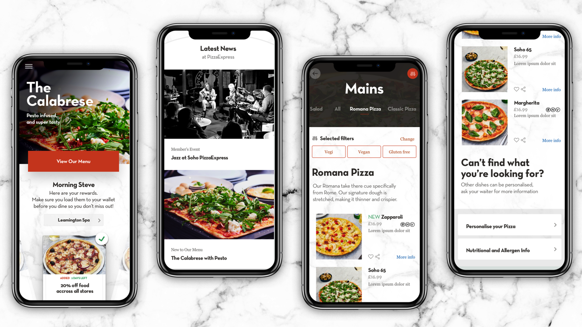 Connecting the guest with Pizza Express away from the restaurant was an extension of the hospitality the client wanted to achieve. By creating a meaningful interaction and frictionless payment the app became a welcome addition to guests mobile devices.